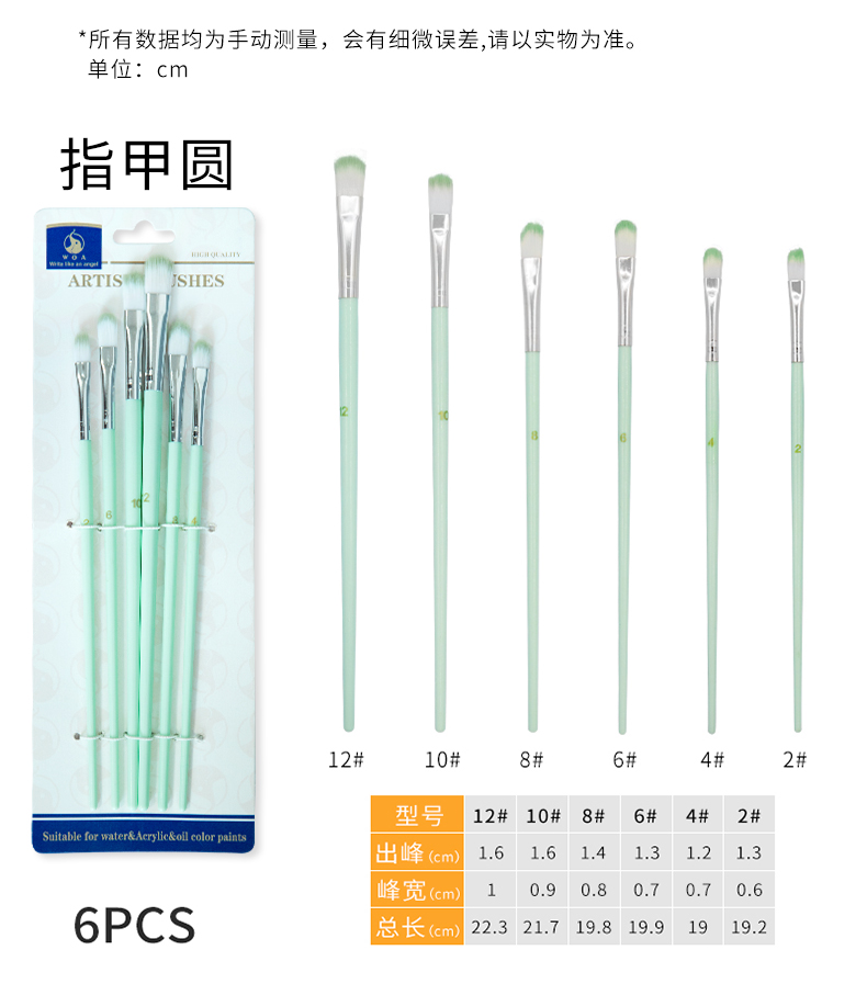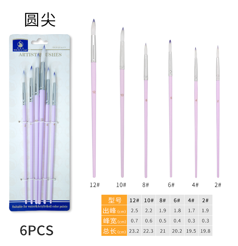 跨境美术油画笔画室培训学生画笔6支套装人体彩绘水彩画笔