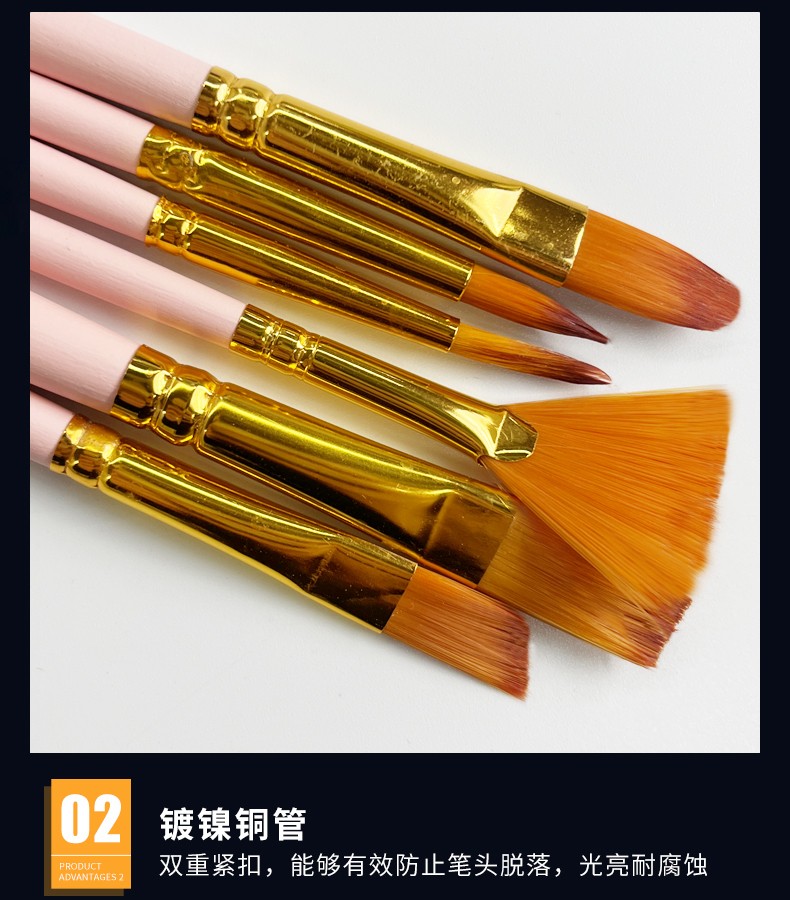 跨境美术油画笔画室培训学生画笔6支套装人体彩绘水彩画笔