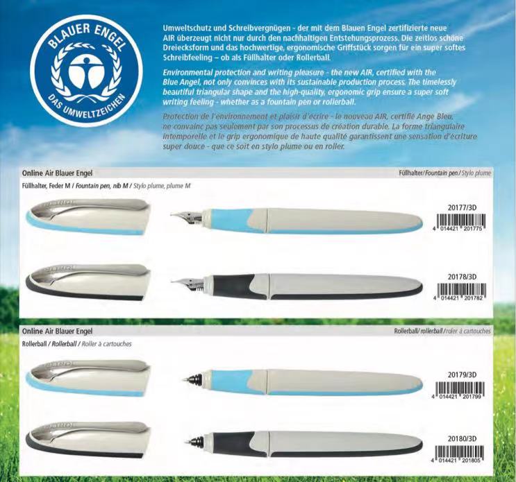 德国ONLINE欧领旗下有四大产品,年轻系列,高端系列,灵感系列,配件系列,针对学生白领的时尚钢笔。