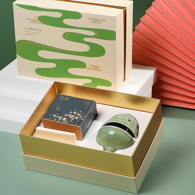 经典款桂花盘香搭配龙泉青瓷博山炉,内部盘香款式可调整不同的香型,应用于不同礼品需求场景。