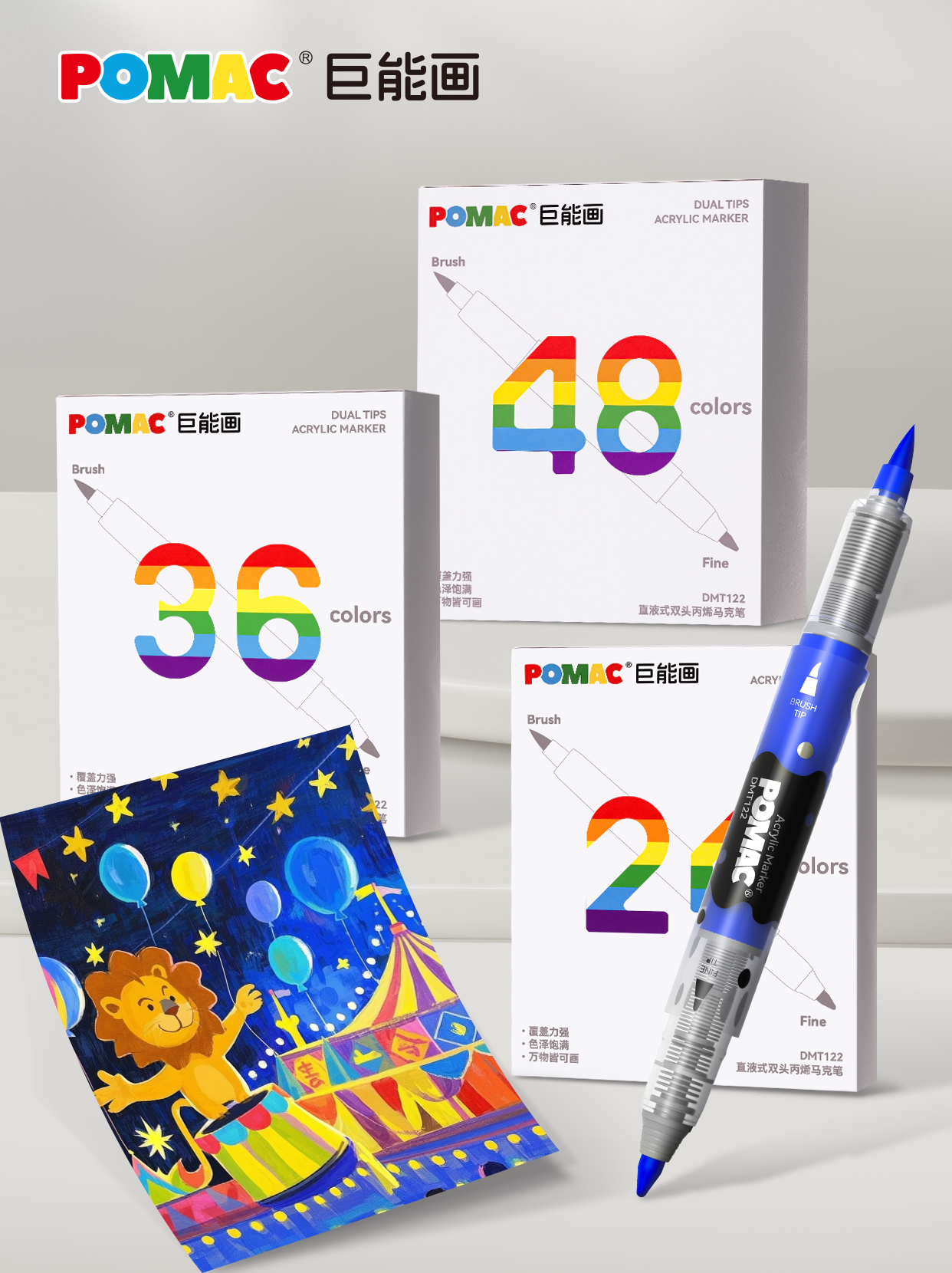 Snowhite launched POMAC, a brand dedicated to art supplies. Its flagship products include direct-liquid acrylic markers, highlighter pens, outline pens, and soft-brush pens. The product range covers: single-tip/double-tip direct-liquid acrylic markers, cotton-tube acrylic markers, cap-off multi-color acrylic highlighters, retractable highlighters, double-tip art outline pens, needle-tip outline pens in 12 nib sizes, and 24-color soft-brush pens in traditional Chinese color palettes. By catering to the needs of segmented markets, Snowhite has gained the initiative in the market and unlocked new vitality for its development.