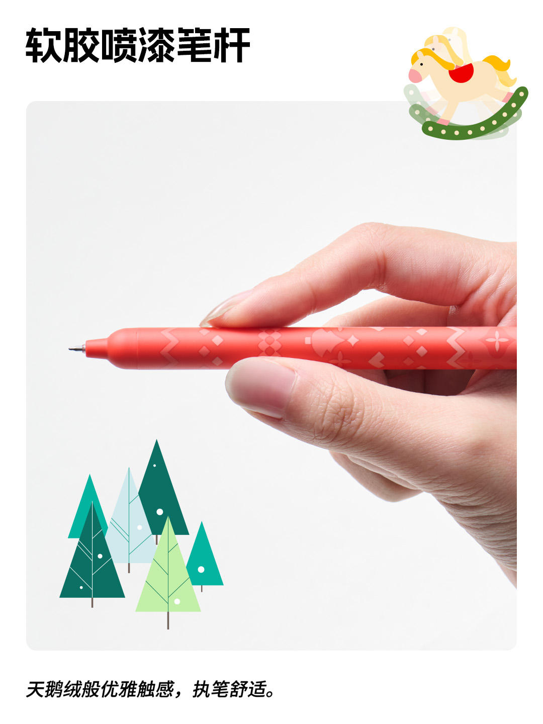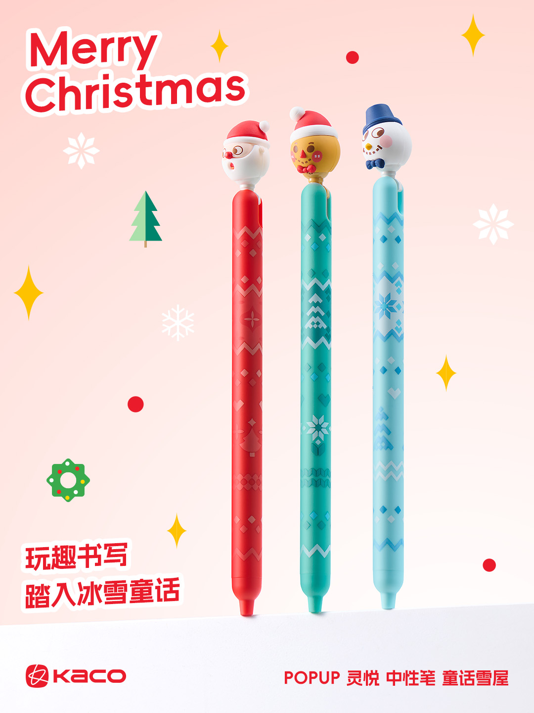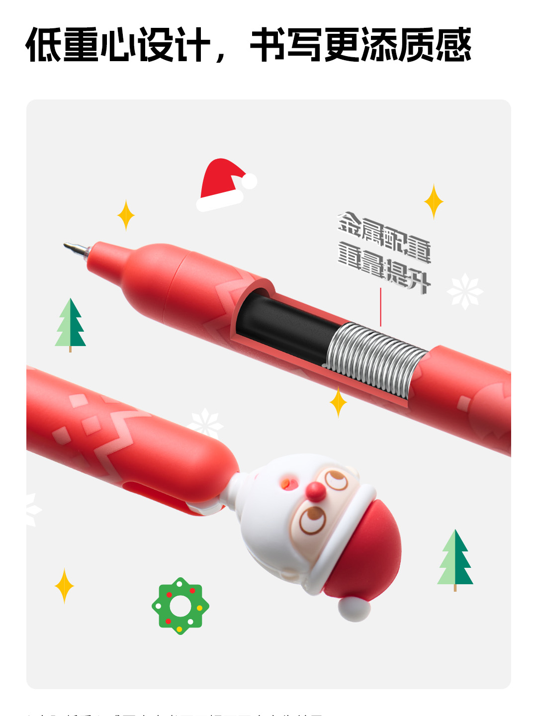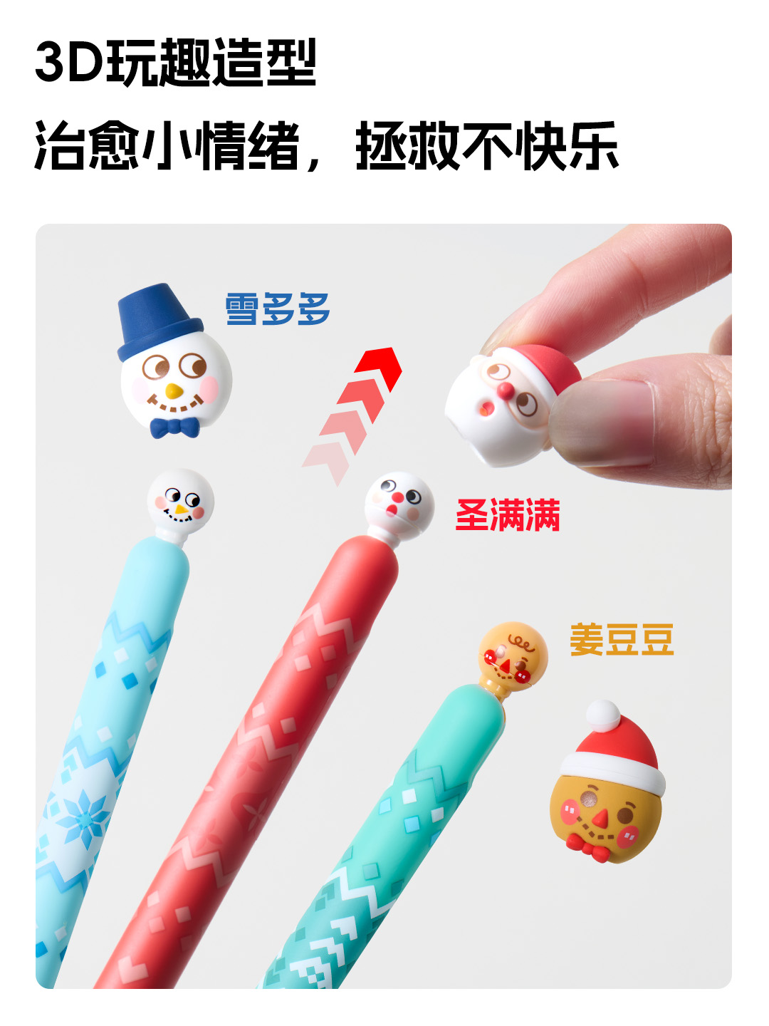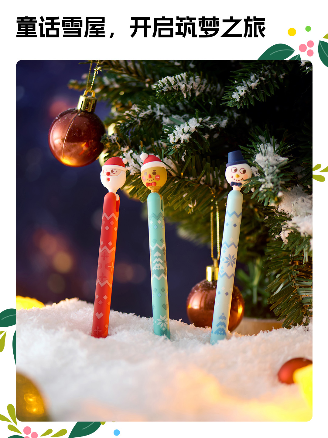 Ingenious designs are added to the pen tip shapes, which can be detached or attached according to personal preference. Press the cute little head on the side of the pen, and the refill will come out instantly for a joyful writing experience. Let the fairy tale snow house accompany you through the Christmas month!