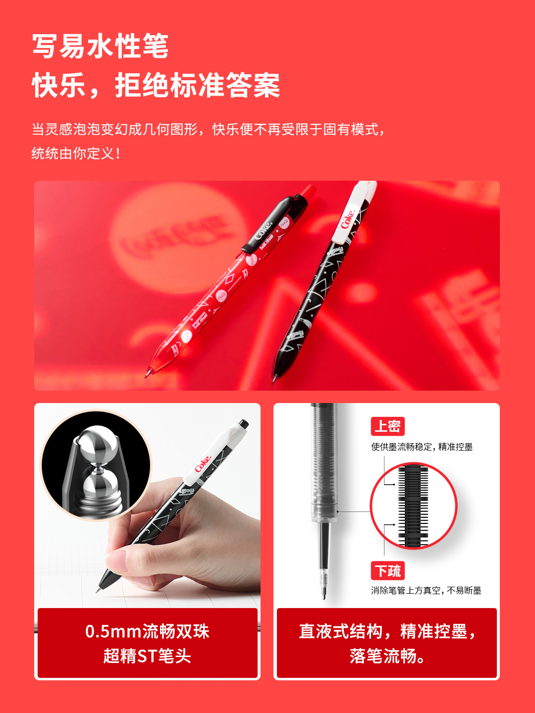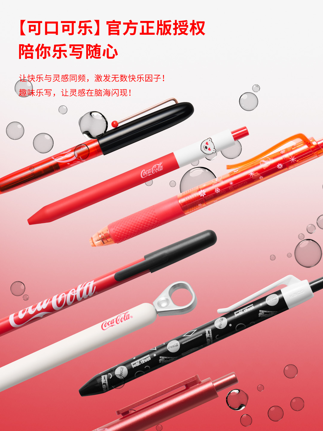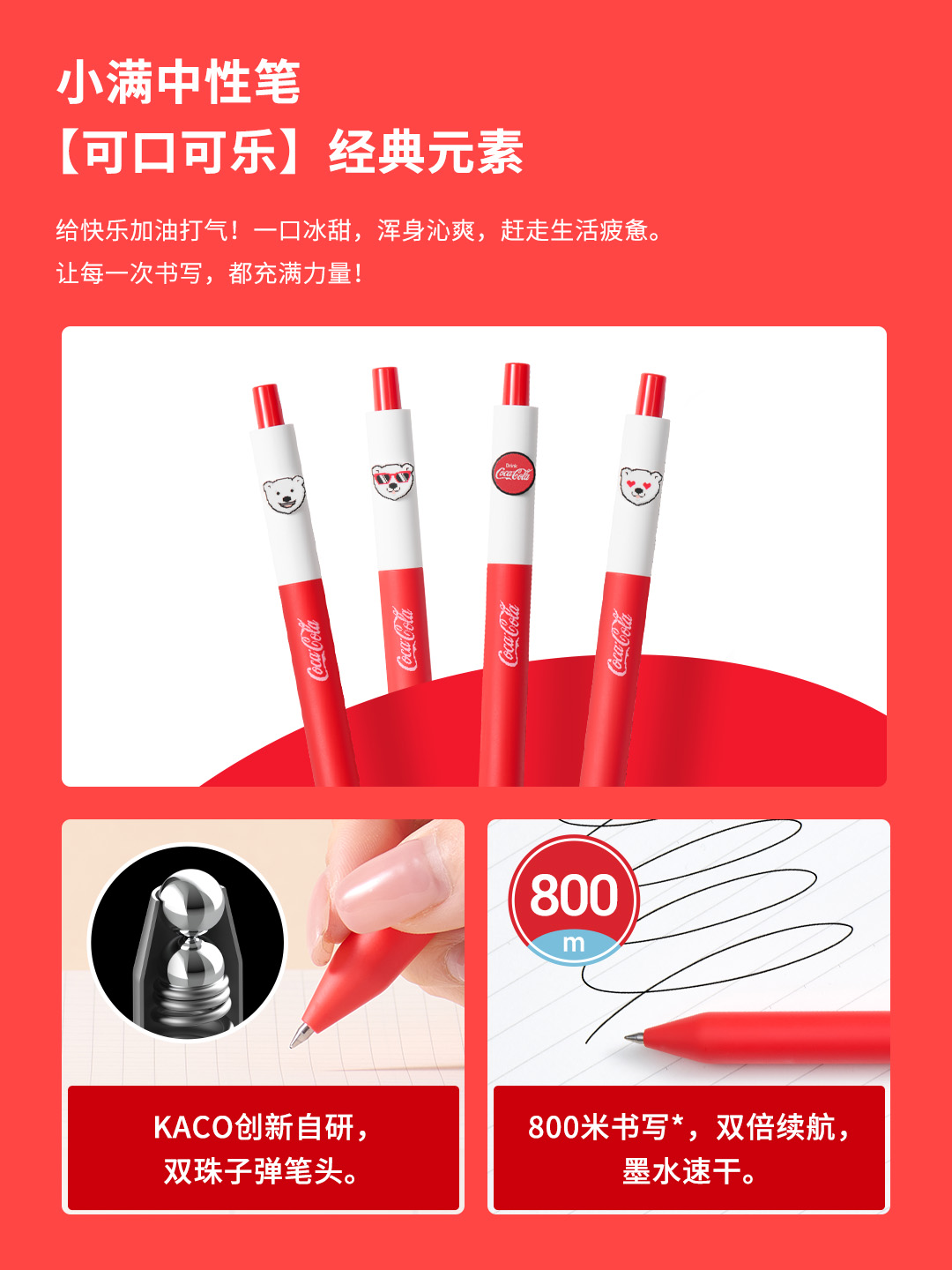 From mechanical pencils and gel pens to fountain pens, KACO's classic pen models are all included in one box. Hold joy in your hand and let inspiration flow continuously. Every KACO x Coca-Cola co-branded pen is full of characteristics~ Designed with a Coca-Cola can as the prototype, opening the cap to write is just like opening a can of iced soda! The classic red and white color scheme makes you seem to hear the crisp sound of ice cubes colliding while writing. Inspiration has no limits, making every writing a toast to joy!