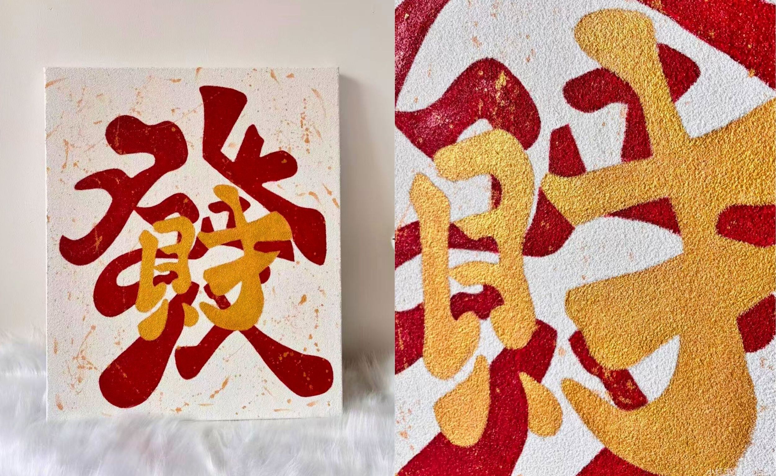Wishing for Prosperity in the New Year_Acrylic x Quartz Sand Texture Painting © Huahua Shiren Happy